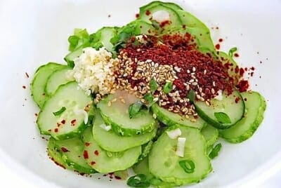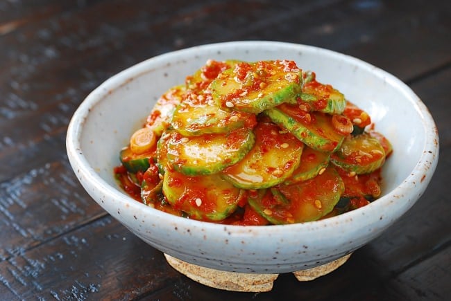 It’s a simple side dish (banchan) you can make with any crunchy cucumbers, such as Korean cucumbers, pickling